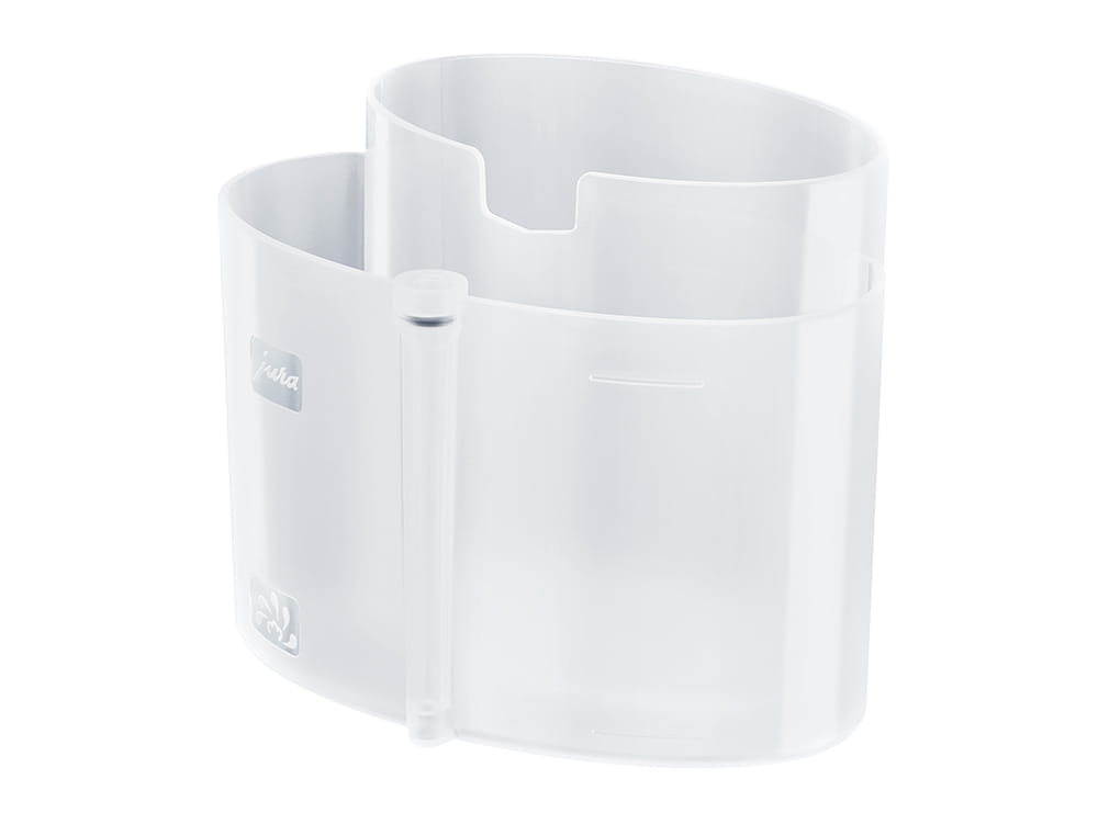 Specjalny 2-komorowy pojemnik z tworzywa sztucznego nadający się do mycia w zmywarce ułatwia czyszczenie systemu mlecznego, sprawiając, że poszukiwanie odpowiednich naczyń staje się zbędne. Pojemnik jest kompatybilny ze wszystkimi automatycznymi ekspresami do kawy JURA i dysponuje dobrze widocznymi oznaczeniami do dozowania środka czyszczącego do systemu mlecznego oraz wody. Dzięki optymalnemu kształtowi zajmuje mało miejsca przy przechowywaniu.